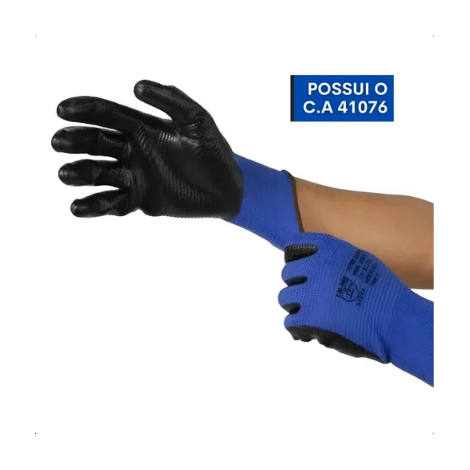 - Acabamento: Borracha nitrílica palma/ponta dos dedos