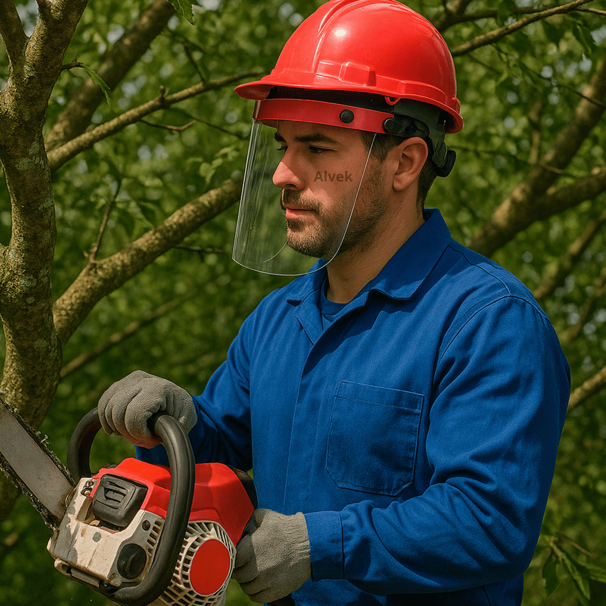 Os protetores faciais devem ser utilizados em conjunto com óculos de segurança. Ambientes: Montadora, serralheria, carpintaria, agricultura, laboratório físico, manuseio de material orgânico.
