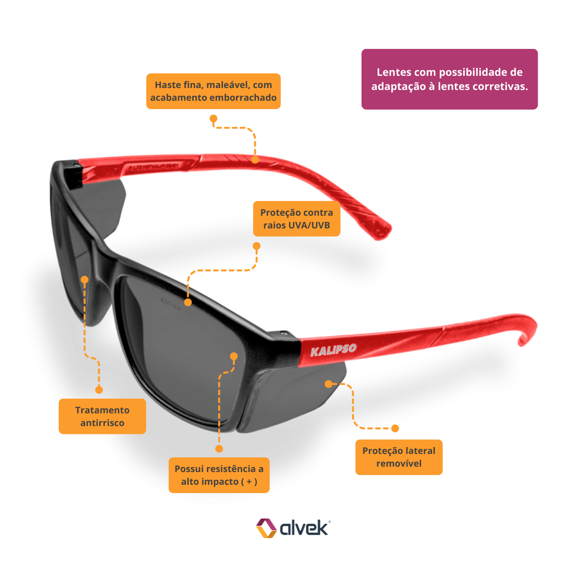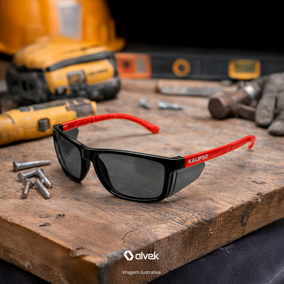 Óculos de Segurança Kalipso – Armação Vermelha com Lente Cinza | CA 45.873